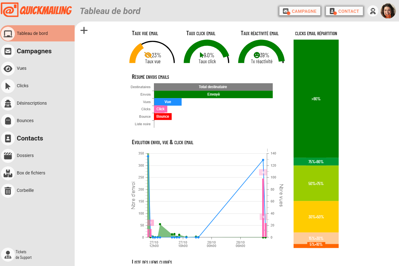 Taux de vues, de clicks, réactivité et désinscriptions pour comprendre ce qui se passe.