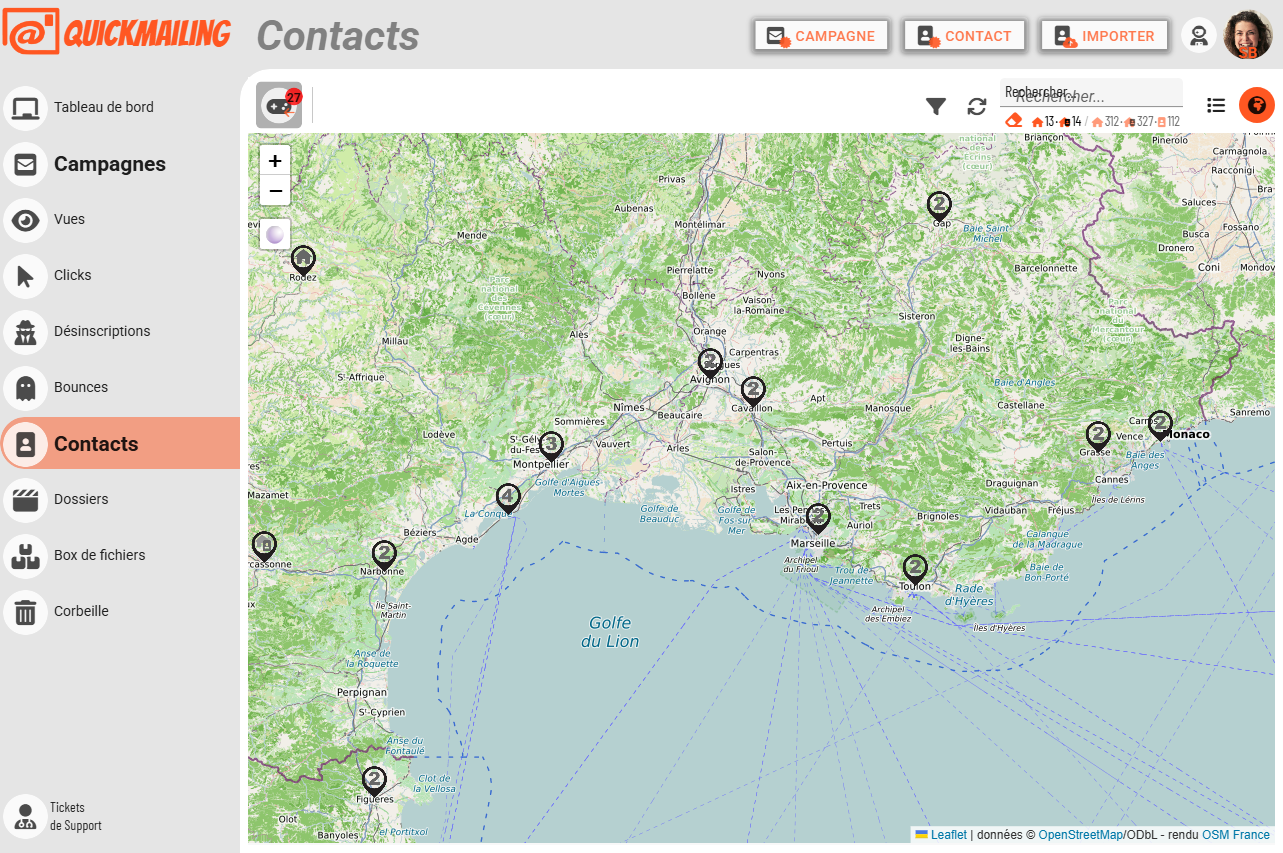 🗺️ Visualisez sur une carte la répartition de vos contacts et de vos vues et clicks.